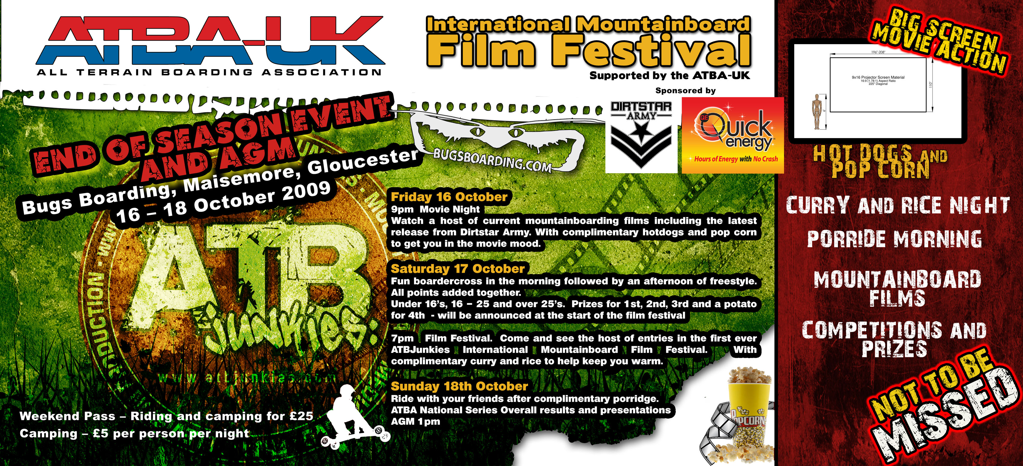 We will be starting things off on Friday evening with some movies, Saturday see’s some day time fun riding and competitions with the International Film Festival starting at 9pm.This will be on a BIG screen, and it is big!